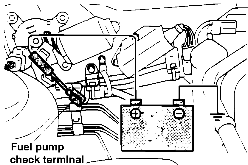 5. Apply battery power to the fuel pump drive terminal to activate the fuel pump. With fuel pressure applied check that no fuel is leaking at any of the connections.