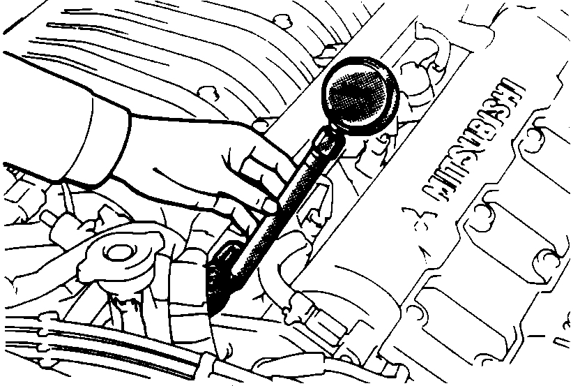 9. Stop the engine and check for a change in fuel pressure readings. Pressure should hold for 5 minutes. If the gauge reading drops, observe the rate of drop. Determine the cause according to the following symptoms.