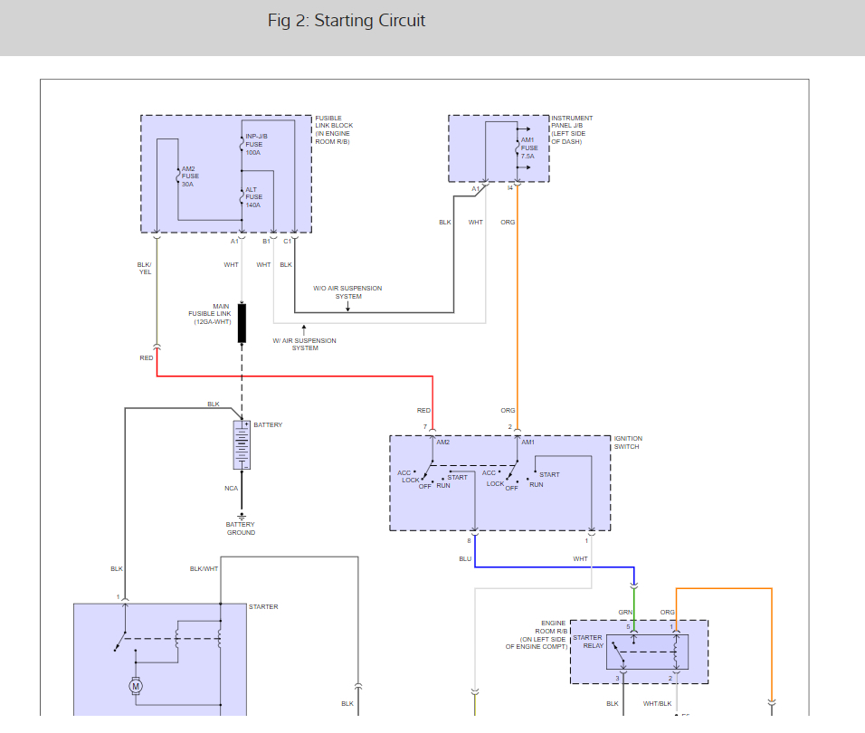 If the security light is not flashing the system is disabled and we have another issue like the starter or starter relay went out. but to be sure lets run down this guide. I have included the starter wiring diagrams and fuse and relay location so we can get it fixed. Lets check the fuses as well, # AM1 fuse in the fuse panel.