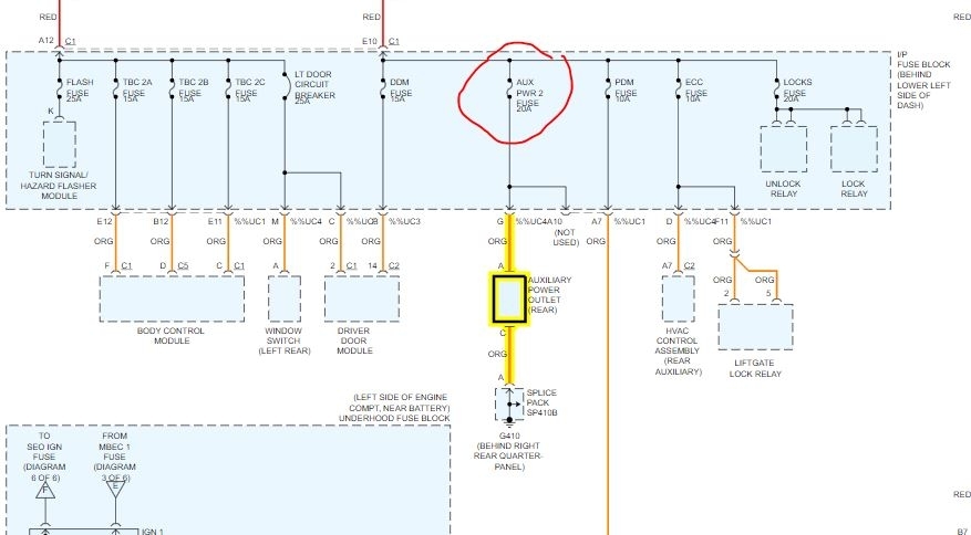I need to figure out where the orange power wire goes for the front cigarette lighter port. Vehicle listed above is an XL model.