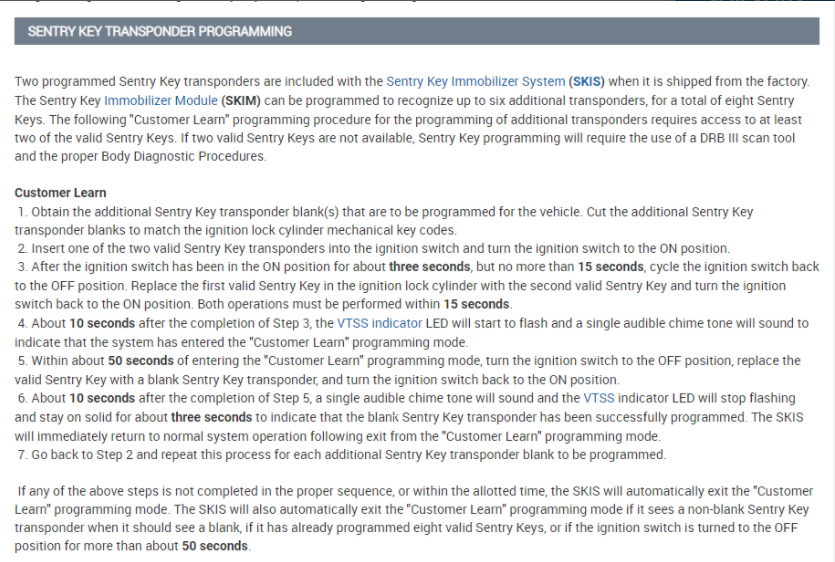 I attached the process to a prior response but put it below again. You need to have other keys that are already programmed in order to enter into "customer programming mode." If you do not have other keys then you need a dealer or shop with the ability to program the key.