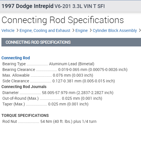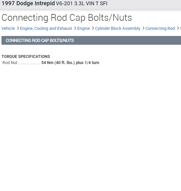 The torque specifications for the rod nut is 54 Nm (40 ft. lbs.) plus 1/4 turn.