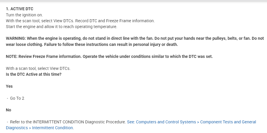 - Refer to the INTERMITTENT CONDITION Diagnostic Procedure. See: Computers and Control Systems > Component Tests and General Diagnostics > Intermittent Condition.