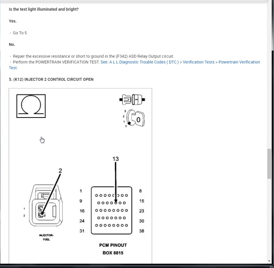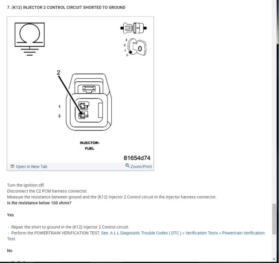 7. (K12) INJECTOR 2 CONTROL CIRCUIT SHORTED TO GROUND