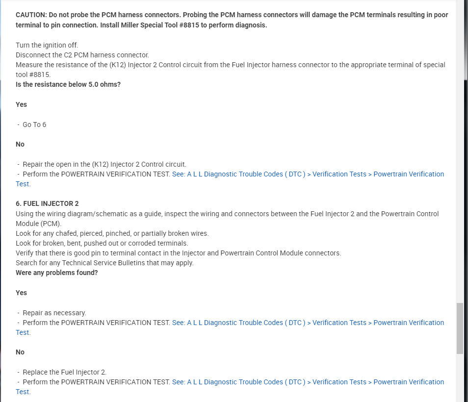CAUTION: Do not probe the PCM harness connectors. Probing the PCM harness connectors will damage the PCM terminals resulting in poor terminal to pin connection. Install Miller Special Tool #8815 to perform diagnosis.