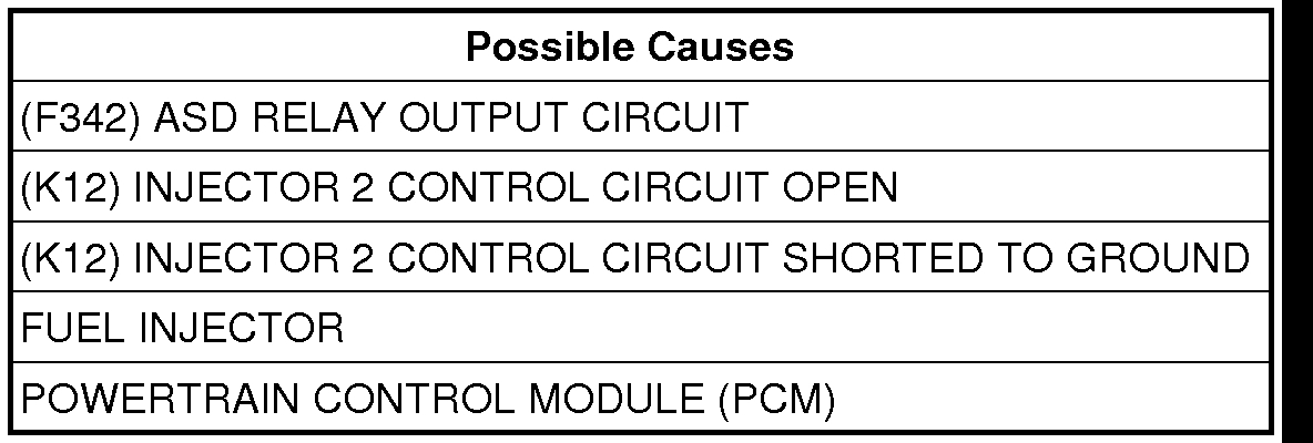- Repair the short to ground in the (K12) Injector 2 Control circuit.
