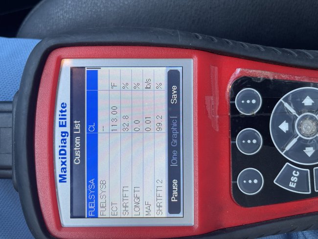 Also, in the first pics, was that when the engine was first started cold? I noticed the ECT indicates 122 degrees, and the system is running in a closed loop. The +38% STFT is extreme. That indicates the ECM is dumping fuel due to a lean mixture, which is the opposite of what I would have expected. With your scan tools, watch oxygen sensor voltages to see where they are.