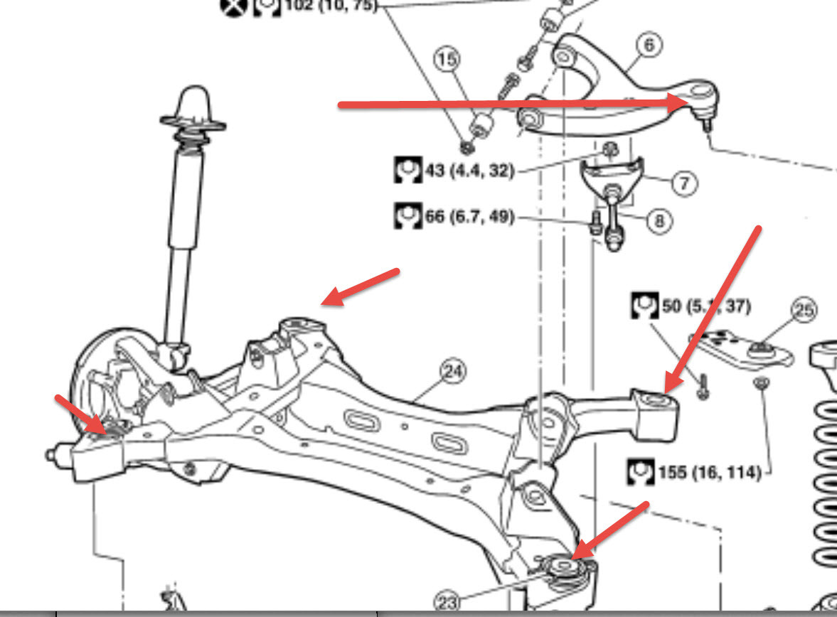 I have also visually inspected all ball joints and bushings as well as used a pry bar to check for excessive flex/ movement and all seem to be in great shape.