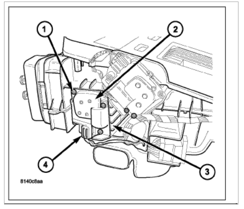 4. Disconnect the HVAC wire harness connector (4) from the blend door actuator.