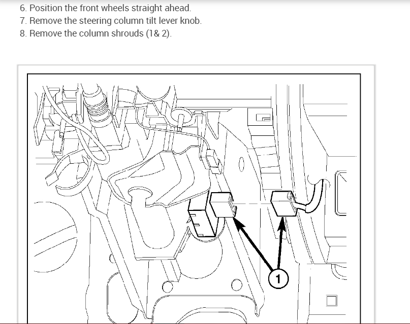 I have included the information that you requested in the diagrams down below. The installation process is going to be the reverse of the removal process. Please make sure that the negative battery terminal is taken off of the battery for at least one hour, to be safe, so as not to deploy the airbags accidentally, and use care when working around them. Please get back to us with how everything turns out.