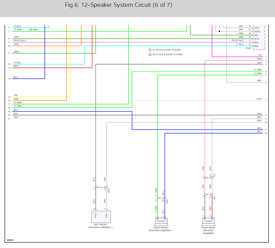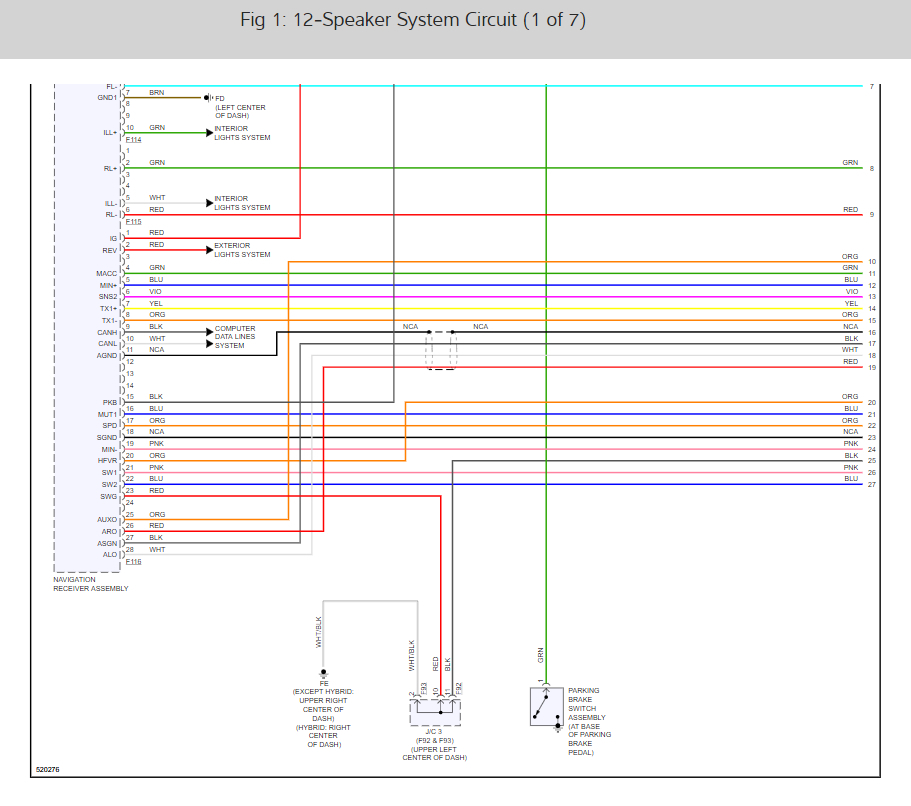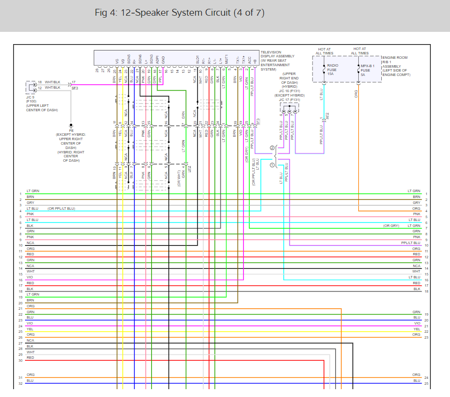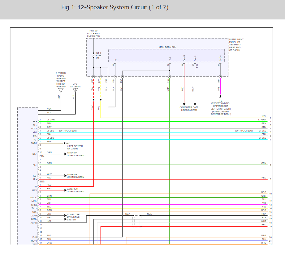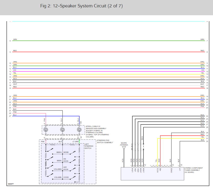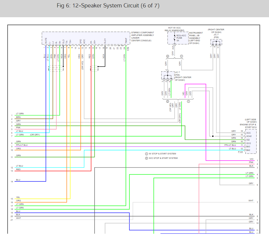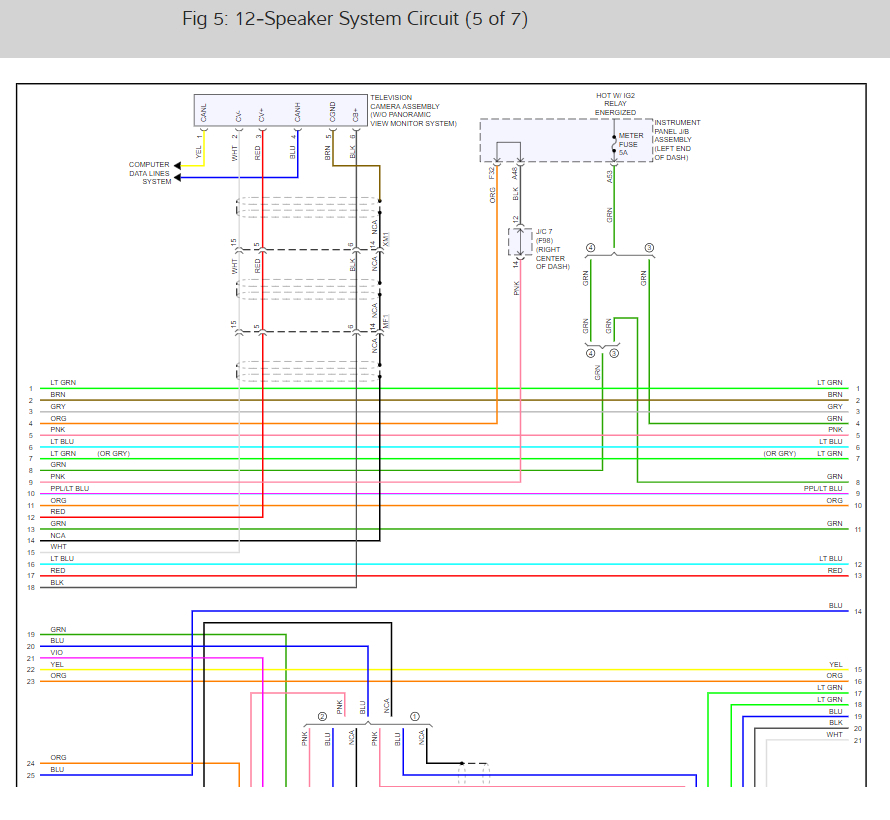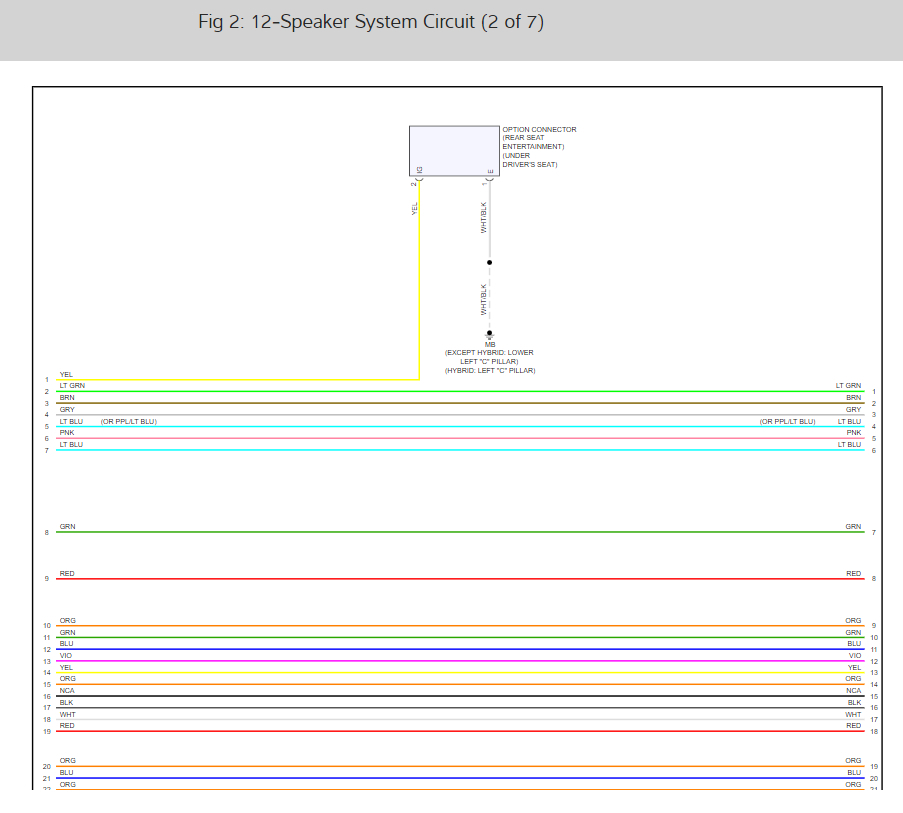 Here are the radio and speaker wiring diagrams for the 7 speaker system (below) along with a guide to check the wiring: