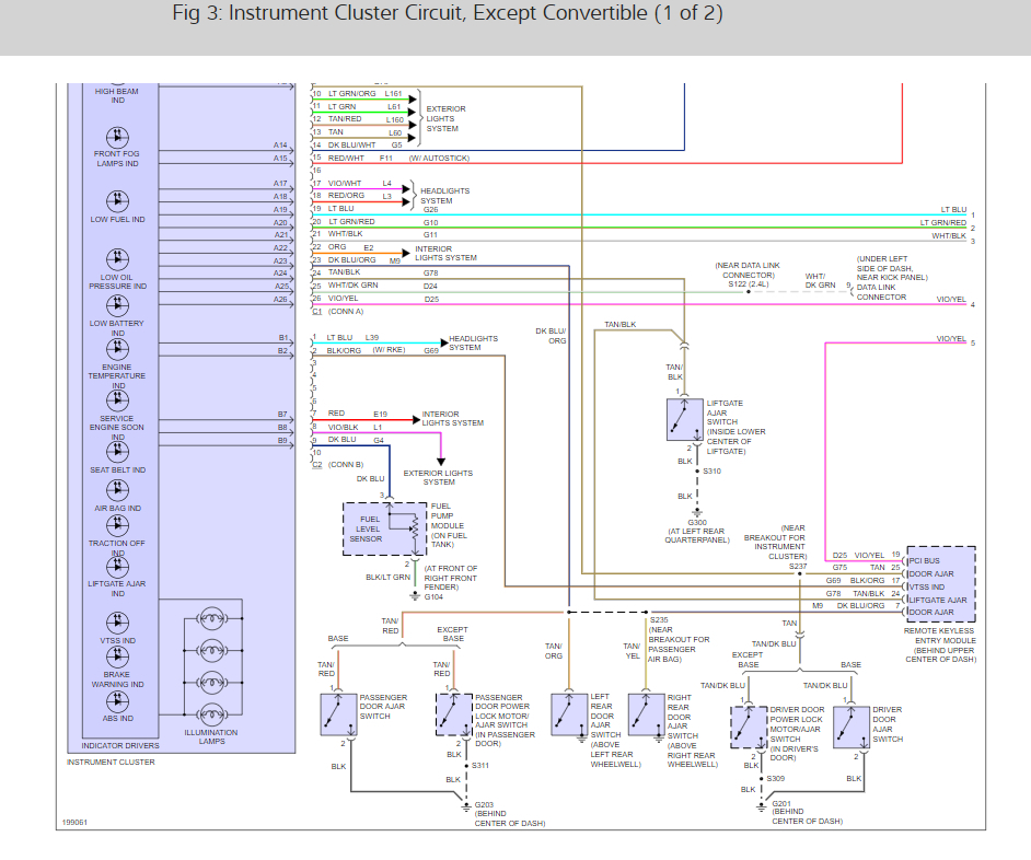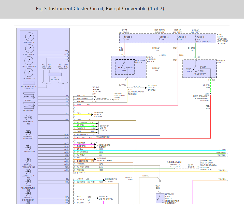 Thanks for the video it helps. start by checking the fuses #10 and #13 for power. here is a guide to help us with the fuse locations below with the cluster wiring diagrams so you can see how the system works:
