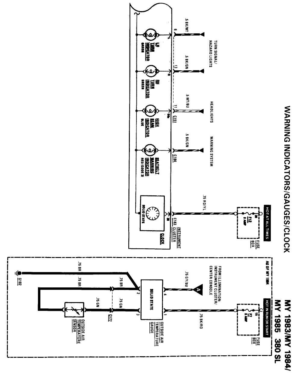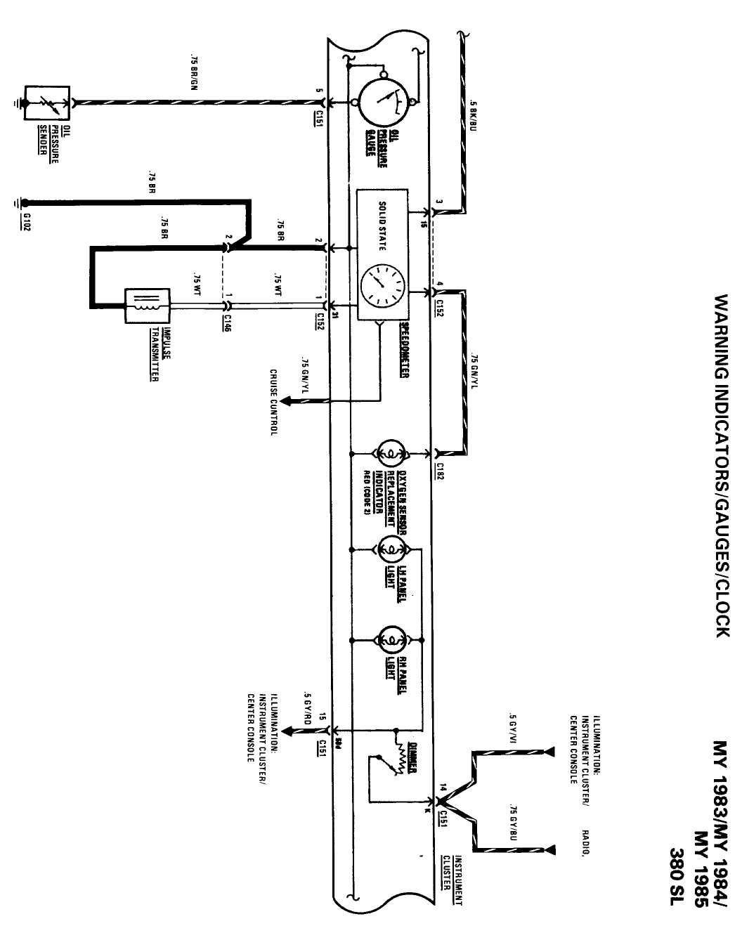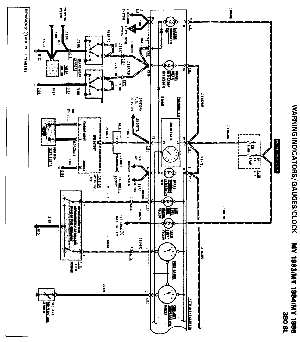 I am attaching a copy of the 1985 380sl instrument cluster wiring diagram.