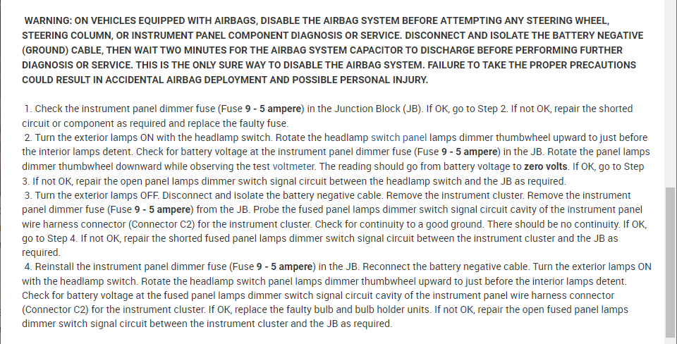 The most common cause of this is a blown fuse or two so we need to start with checking all fuses for the cluster in the left side of the dash.