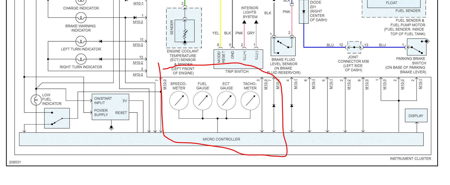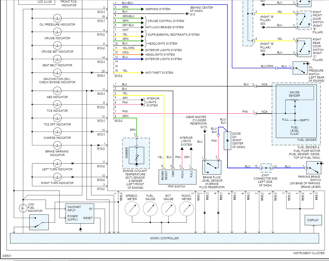 I'm not going to lie. It may not be easy. First, I attached two pics below of the wiring schematic related to the instrument panel/gauges. The first thing I would check is the wiring connection to the micro controller which is part of the cluster.