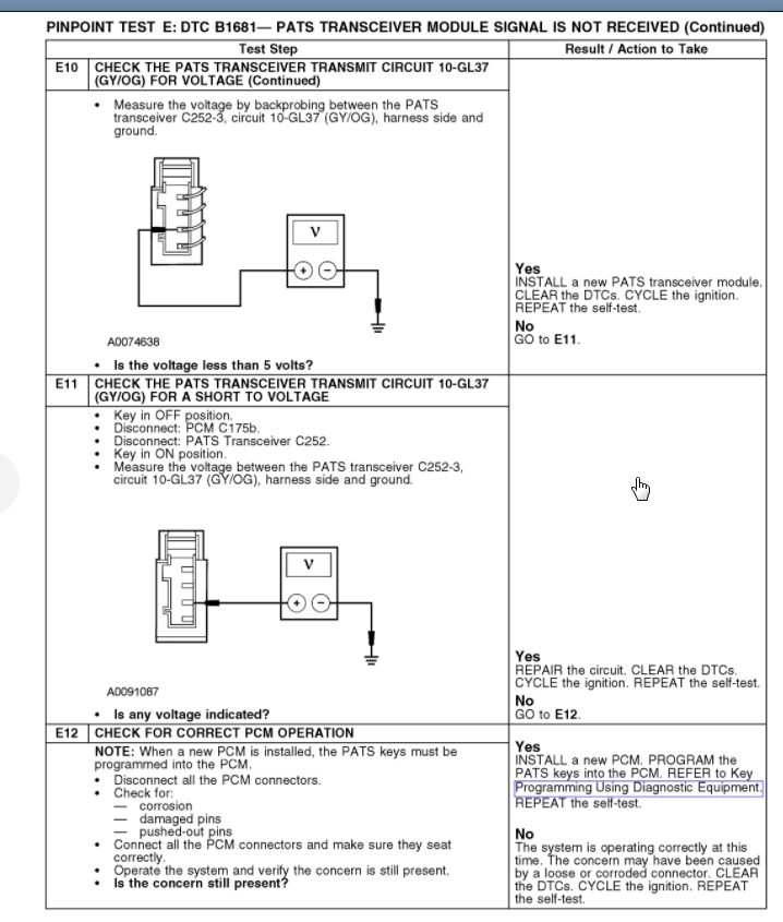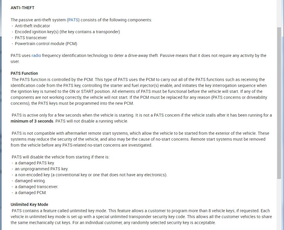 I attached the info below. As you can see there is only a transceiver, key, and PCM. The cluster is not part of this so I also attached the testing for a common code where the PATS module did not receive the proper signal.