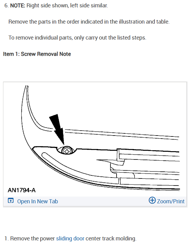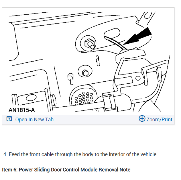 7 NOTE: The remote transmitter or B-pillar switches may be used in place of the overhead console Open/Close switches to initialize the power sliding doors.