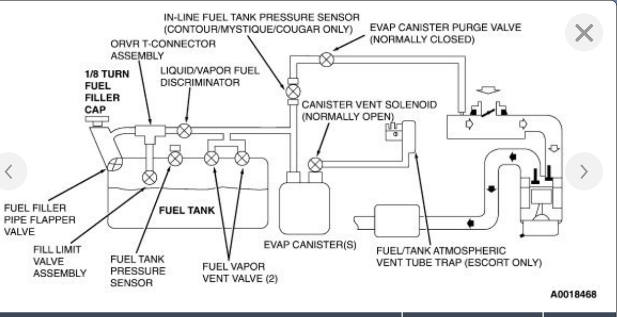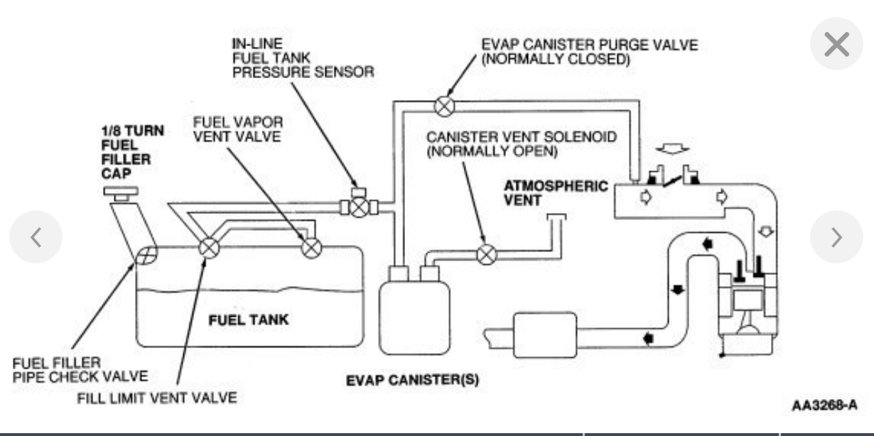 Okay, my bad. without seeing it sometimes it can be hard to get it on the first try. This is going to be your EVAP line coming your vehicle's charcoal canister. This is the final step in your vehicle's evaporative emission system that catches fumes from the fuel tank and stores them in a charcoal canister until your vehicle's Power-train Control Module (PCM) decides to purge them, then is opens a valve and they get introduced through the hose in question into the intake manifold where it is burned in the engine. I have included a factory description of how your vehicle's EVAP system works in the diagrams down below.