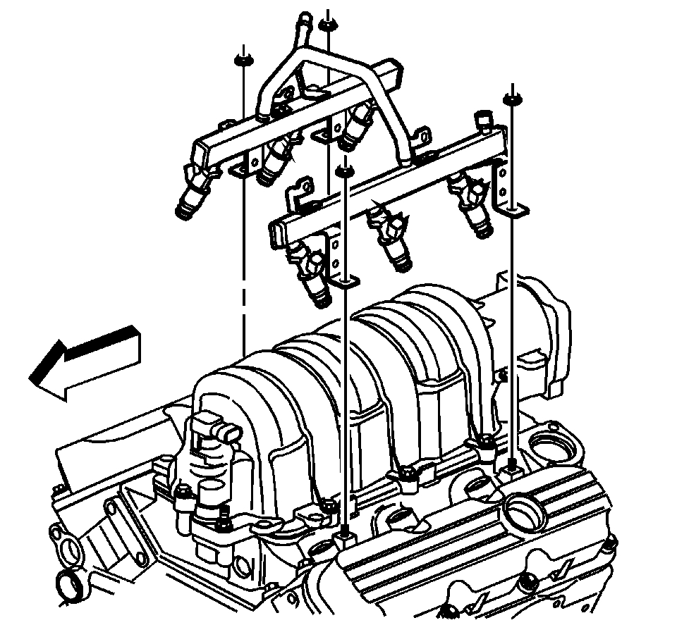 7. Remove the fuel injector rail.
