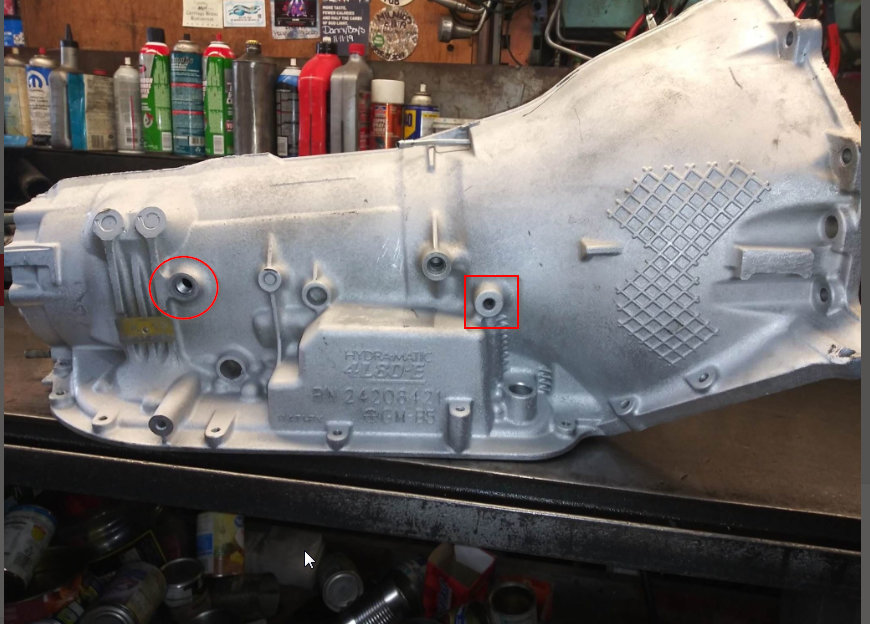 You can use most any vehicle that the transmission came in after 1995 when they made an upgrade to where the cooler lines connected to the case. If you look at the picture, the square was where the cooler lines attached from 90-94. Then in 95 they switched it to the rear location where the circle is. Plus there was a case different, it didn't have the top bolt hole for the LS engine in the bell housing. Lastly the linkage is shorter in the older units.