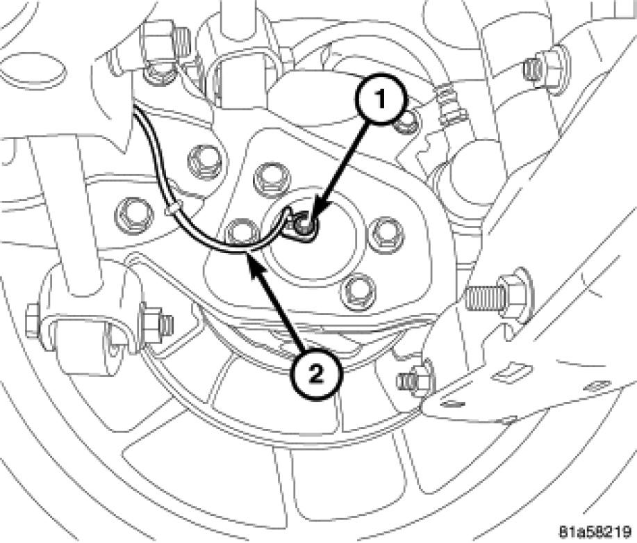 5. Remove the screw (1) fastening the wheel speed sensor (2) head in the rear of the hub and bearing.