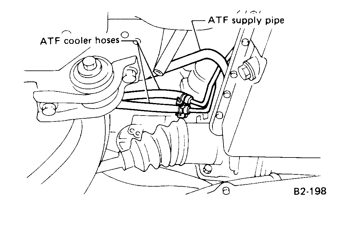 10. Connect ATF cooler hoses and ATF supply pipe and lower car to the floor.