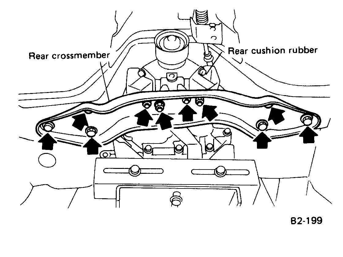 31. Remove rear cushion rubber mounting nuts and rear crossmember.