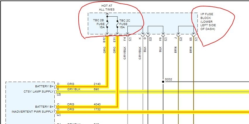 I did find out that TBC 2A was the cargo light. TBC 2B is the dome lights on the door open switch. TBC 2C was the manual push on buttons on them. These were located on the inside panel near the center bottom area, or lower front since it's at an angle. It was 15A and it was blown. Probably was blown when a light bulb melted...it looks like 1 might have in the rear dome light before I got the truck used.