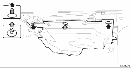 2. Release the clips, and remove the under cover assembly - passenger.