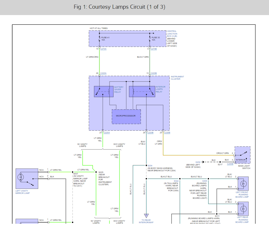 Yes, you can have the light wired to the interior lights and have a cutoff switch to disable the additional lighting system. After connecting to power use a switch to interrupt the power feed. You can use any ground. I have included the interior lighting system wiring diagrams which show you where to connect the power to. I would tap into power at the black and light blue wire. Check out the diagrams (below). Please let us know if you need anything else to get the problem fixed.