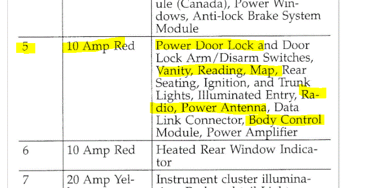 Based on the schematics and what doesn't work, I have a feeling fuse 5 in the junction box/fuse box at the end of the dash is bad. Do me a favor. I need you to recheck that fuse. Additionally, I need you to confirm there is power to it. Here is a link showing how it's done: