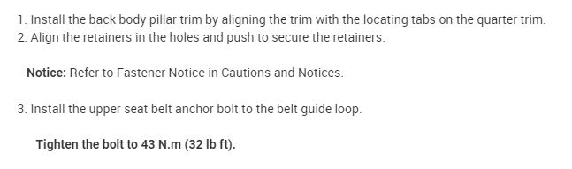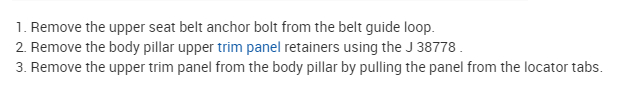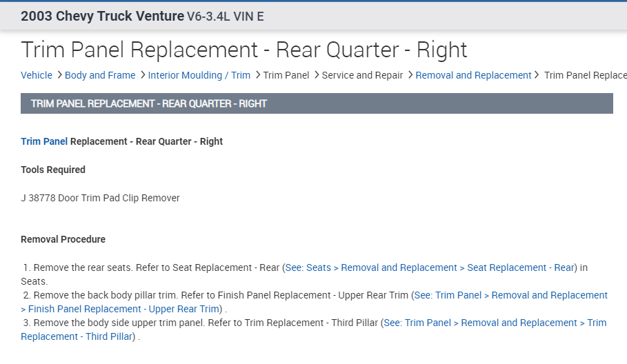Before you remove the trim panel, the seat, upper trim panel, and the rear body pillar trim needs to be removed first.