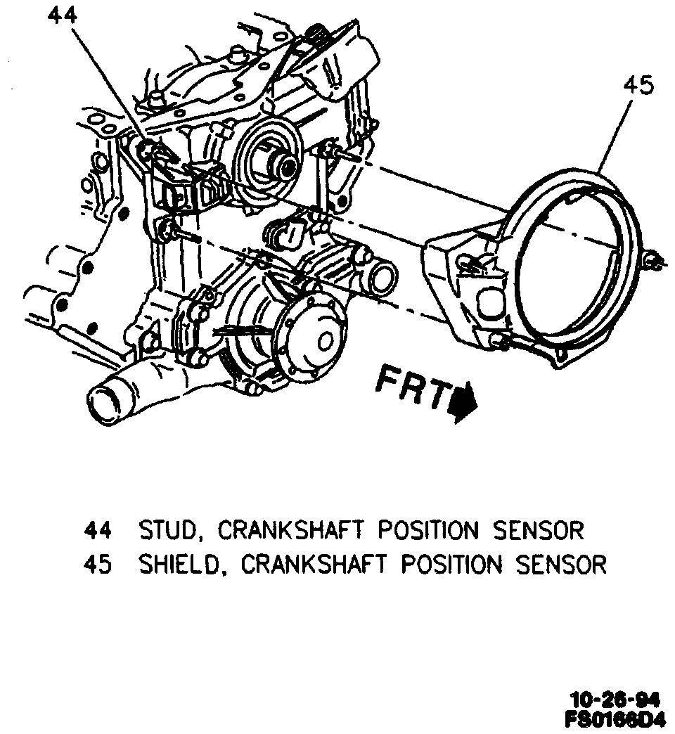 4. Crankshaft position sensor shield to front cover.