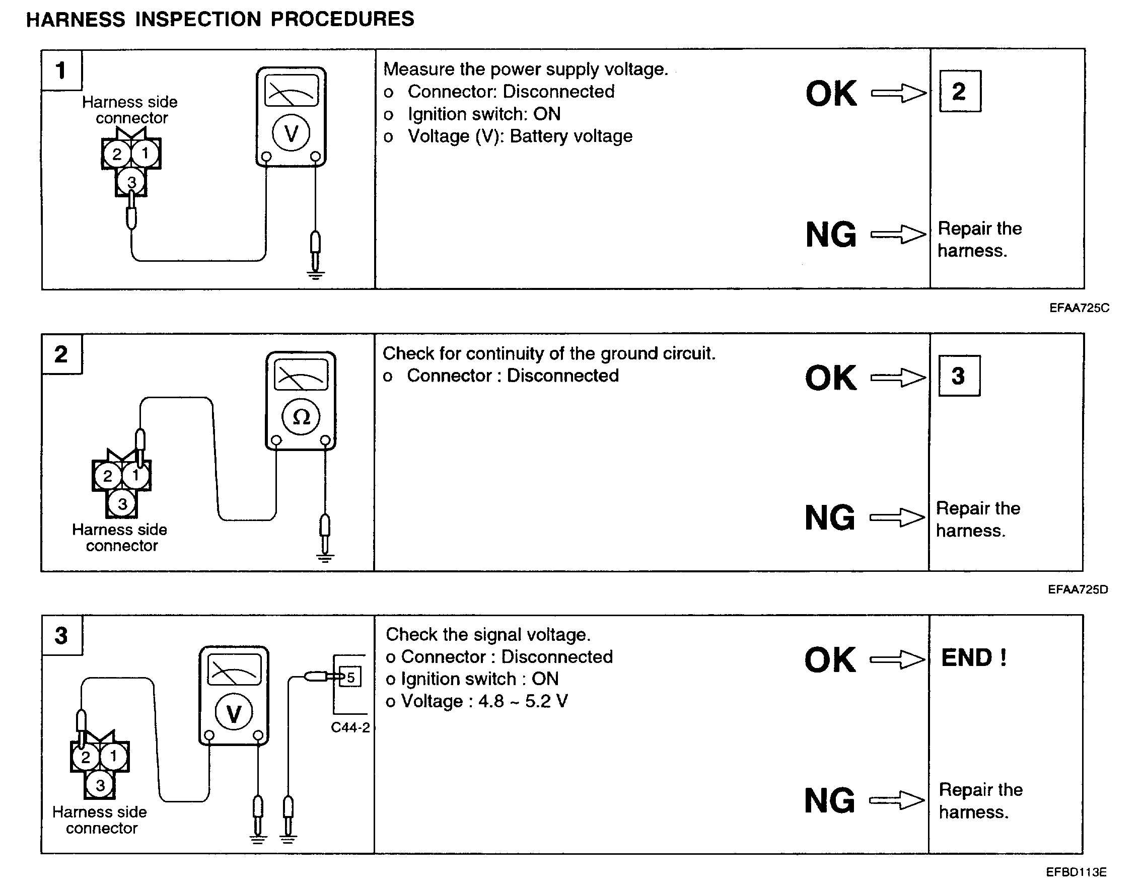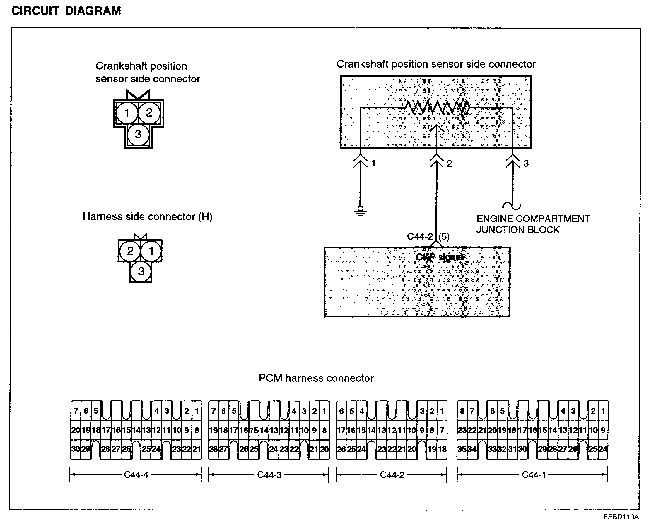 1. If unexpected shocks are felt during driving or the engine stalls suddenly, shake the crankshaft position sensor harness. It this causes the engine to stall, check for poor sensor connector contact.