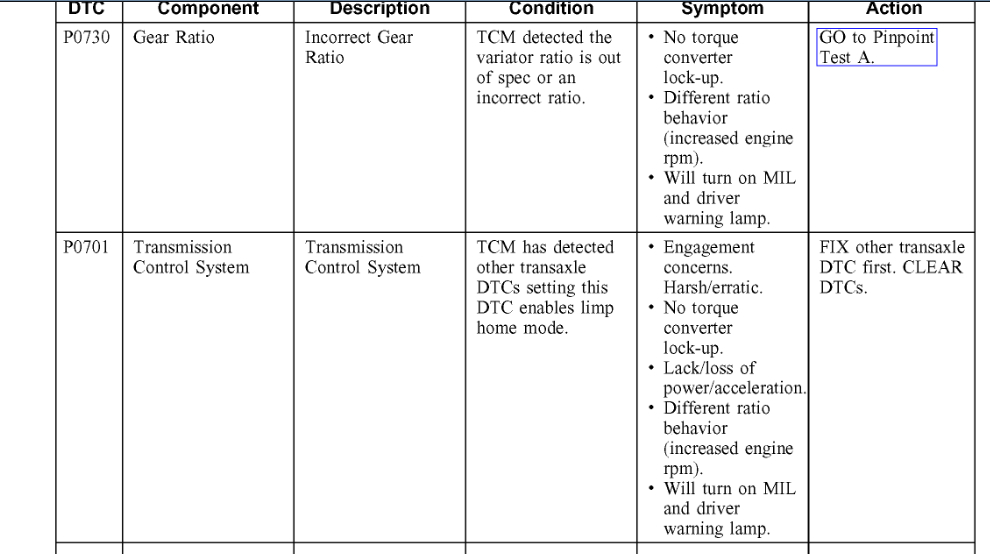 When the weather is below twenty degrees the "wrench" light will come on . Symptoms include no rpm increase even if the throttle is pressed to the floor and the no transmission engagement or it will move ahead very slowly. After it is warmed up I can shut off the key, wait ten seconds and most times it will behave normally. Two codes were flagged P0701 and P0730 but they go away after a hot soak. I have seen other posts with this but not a definitive answer.