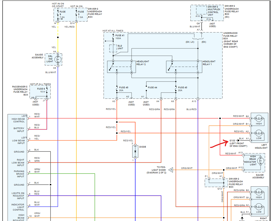Do you happen to know where exactly g100 is located? Is it right near the headlight underneath it in the fender well? I checked g200 right above the kick panel and it looked good, all grounds intact. Check G 100 tomorrow if I don’t end up having to work.