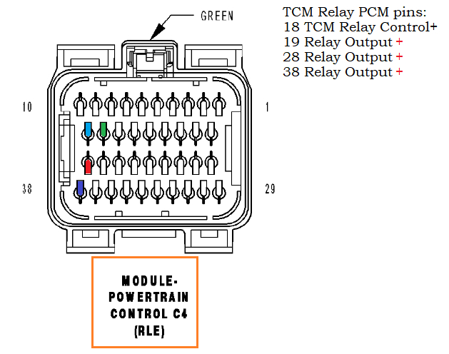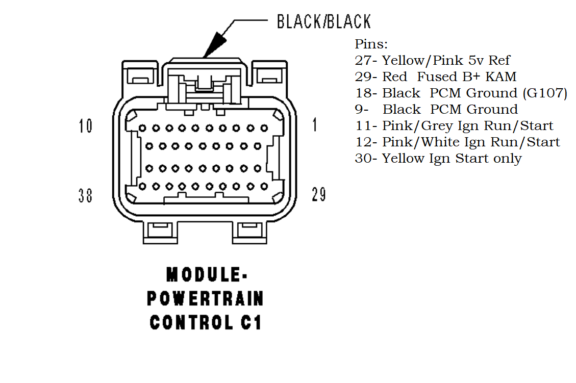 Below is the PCM connector C1 with the Keep Alive Memory feed, a few Ignition switch feeds and some PCM Grounds.