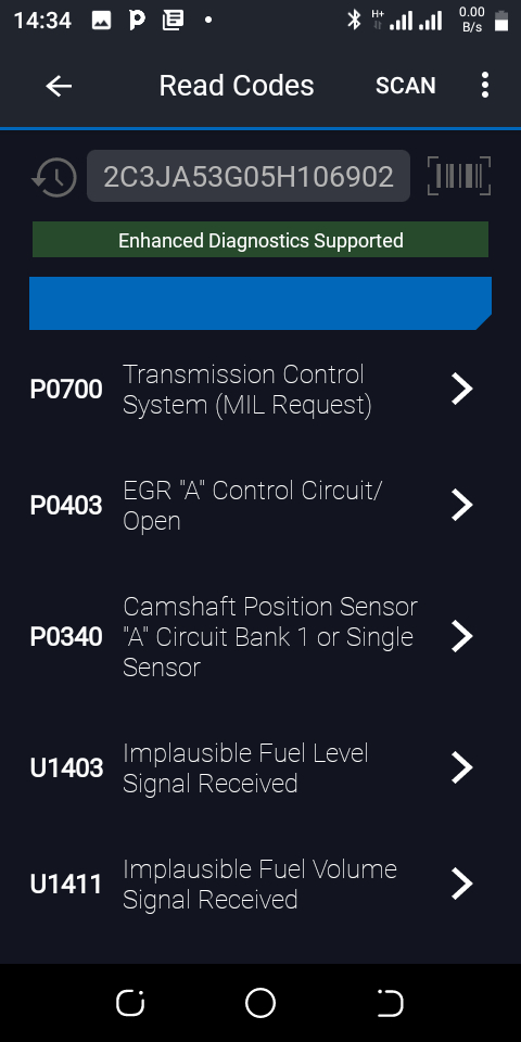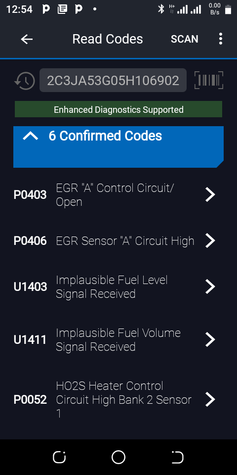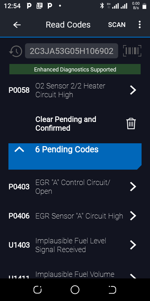 P0406, U1403 and U1411 for confirmed and pending codes on only scanning.