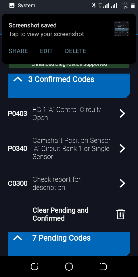 Yes, I did clear the codes, but they came back on. I also cleared normal p codes separately however the codes returned back. For eg, P0403,0406,0340,0052, and 0058 were for confirmed while P0700,0403,0340,0052,0058, and 0888 came up for pending initially however when I cleared the codes, I got 0403,0406,C0300, and P2288 (1st time I think appeared. It came back twice after clearing the codes) confirmed codes. Pending remained the same except for additional P0406.