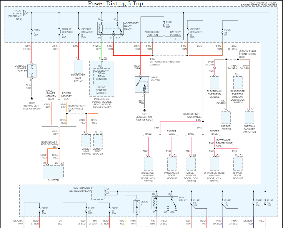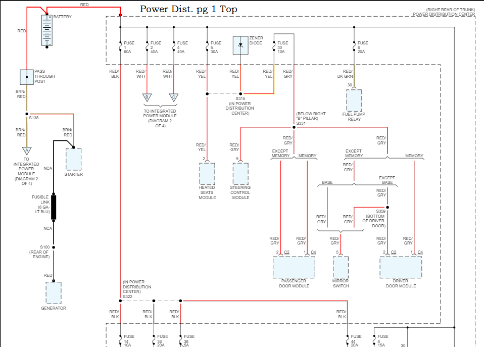Here are all the Power Distribution diagrams, each page is labelled top and bottom, so if you print them out, you can put them together.