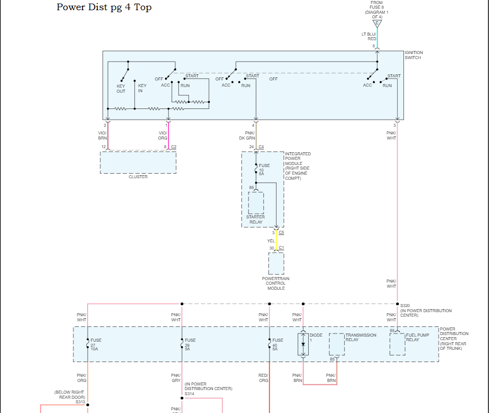 And the check the Keep Alive Memory at the PCM, Ill post a diagram for it, but it comes from Fuse 23 15Amp in the engine compartment fuse block.