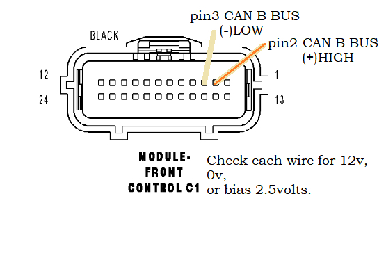 I saw the radio connector and will be able to locate it again. Please checking the CAN B at the radio connector does it still require locating and testing the control module C1 connector pin 2 and 3? I saw something that looked like the antilock brakes' module under the driver side steering but still couldn't locate the C1 24 pin front control module to proceed with the test. Can you also please give me a guide on how to locate this wire faster?
