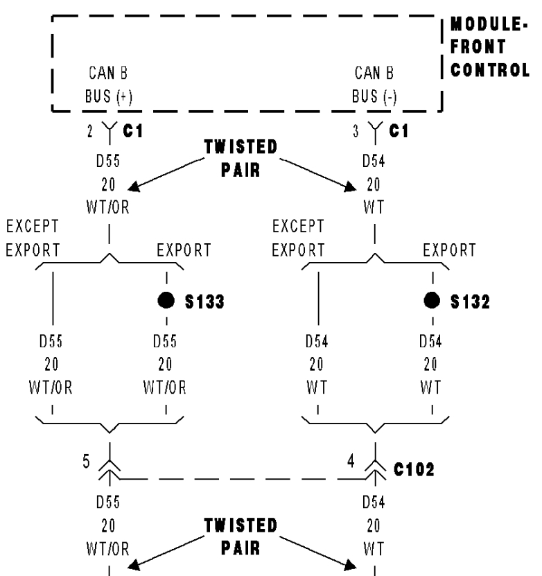 Here's the location of the Front Control Module and connector C1 pins 2 and 3 which are the CAN B Bus wires, they will be a twisted pair, check each one to ground separately and then check across both wires for a bias 2.5-volts. See what voltage is on either wire with the key on. Write it down.