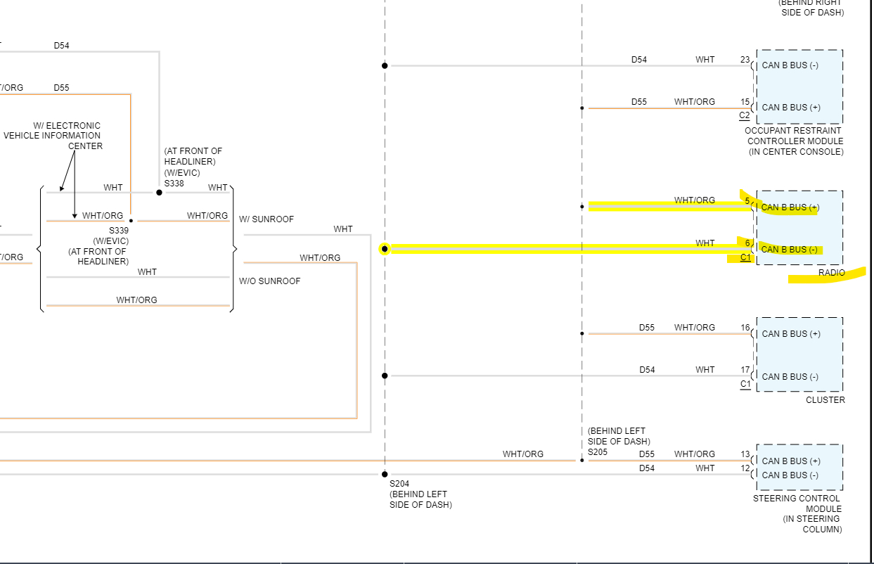 Thank you so much for the wiring diagram. Please to start with, since I'm not too conversant with CAN-BUS work, to access this CAN-B network especially and other CAN-BUS. I'll need to first disassemble or loose the instrument cluster, radio, etc., right? I'll check that and get back to you. Please later you can also guide me on how to bypass the modules even though it doesn't fix the starting problem. But I'll check what you advice me to do first. Thank you for all the guide!