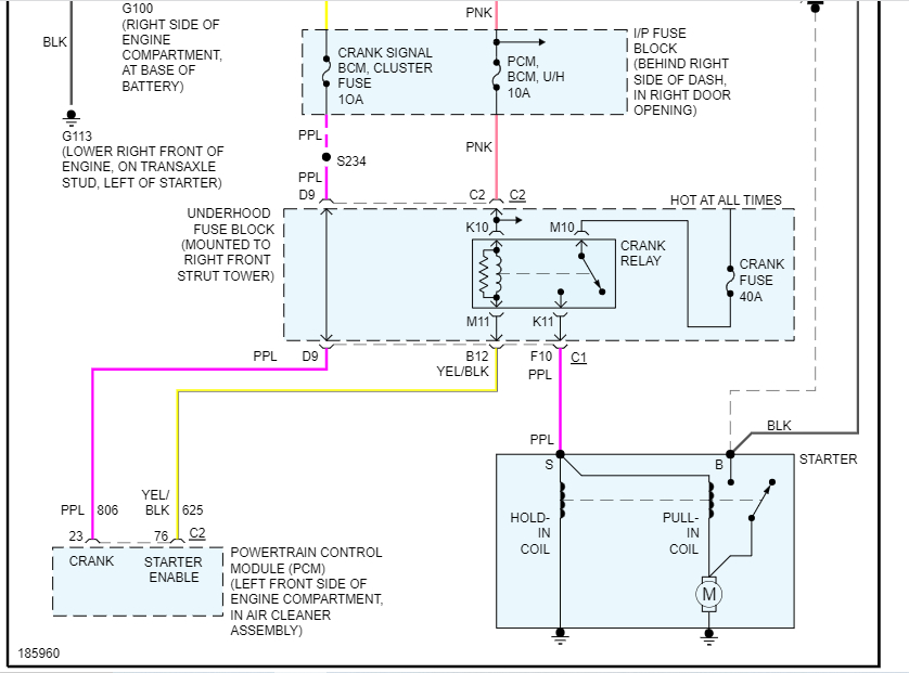 The next day, I drove two hours from my home to the car in an attempt to solve the problem. The car started fine, but I had parts to install. New starter, check. New ignition relay and starter relay, check. Battery tested at 12.6 volts. The car started up multiple times for me with no problem. I checked all the other relays, Maxi fuses, and mine fuses that had “ignition” on them, and they were fine. I plugged in an auto code reader into the dash before and after the starter replacement and no codes showed. After a one mile, 10-minute test drive around the college campus, I parked the car and thought I had solved the problem.