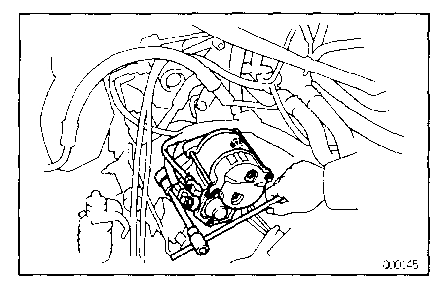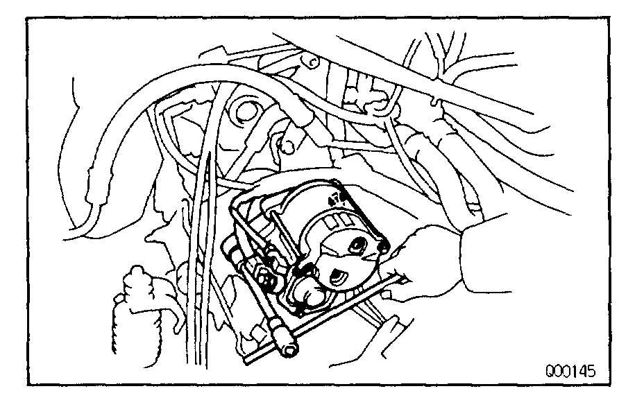 b. Remove the two bolts and starter.