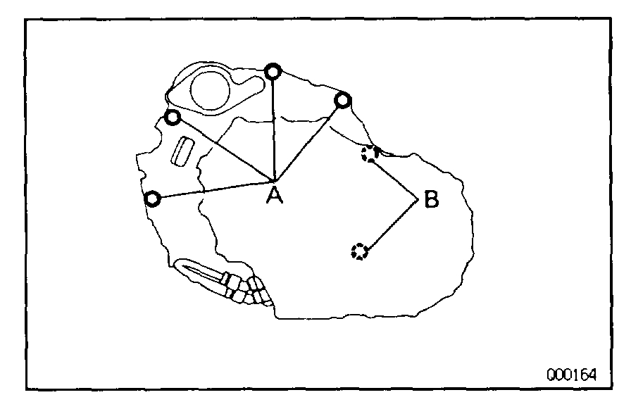 (c)Temporarily tighten the topmost bolt from the three near the knock pins.