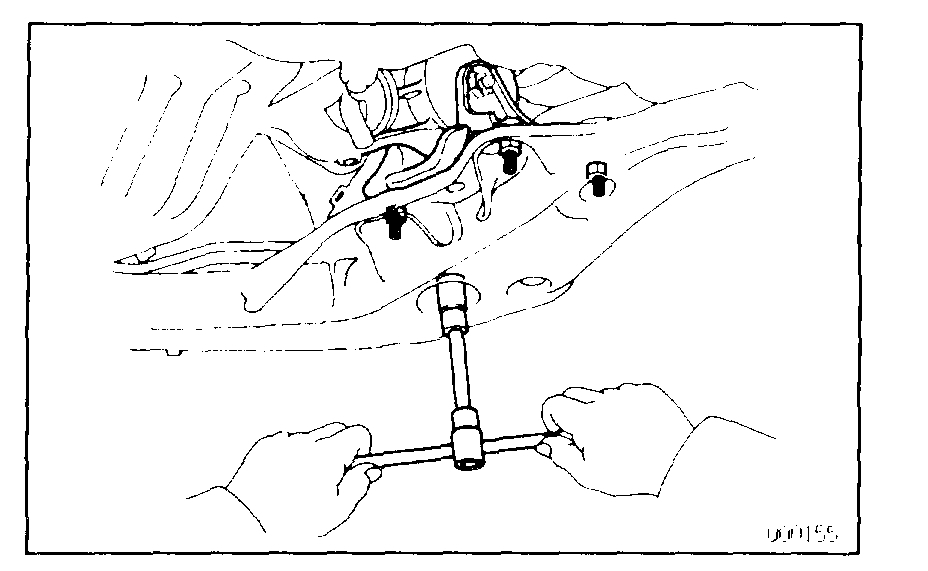 c. Remove the three bolts and engine left mounting.