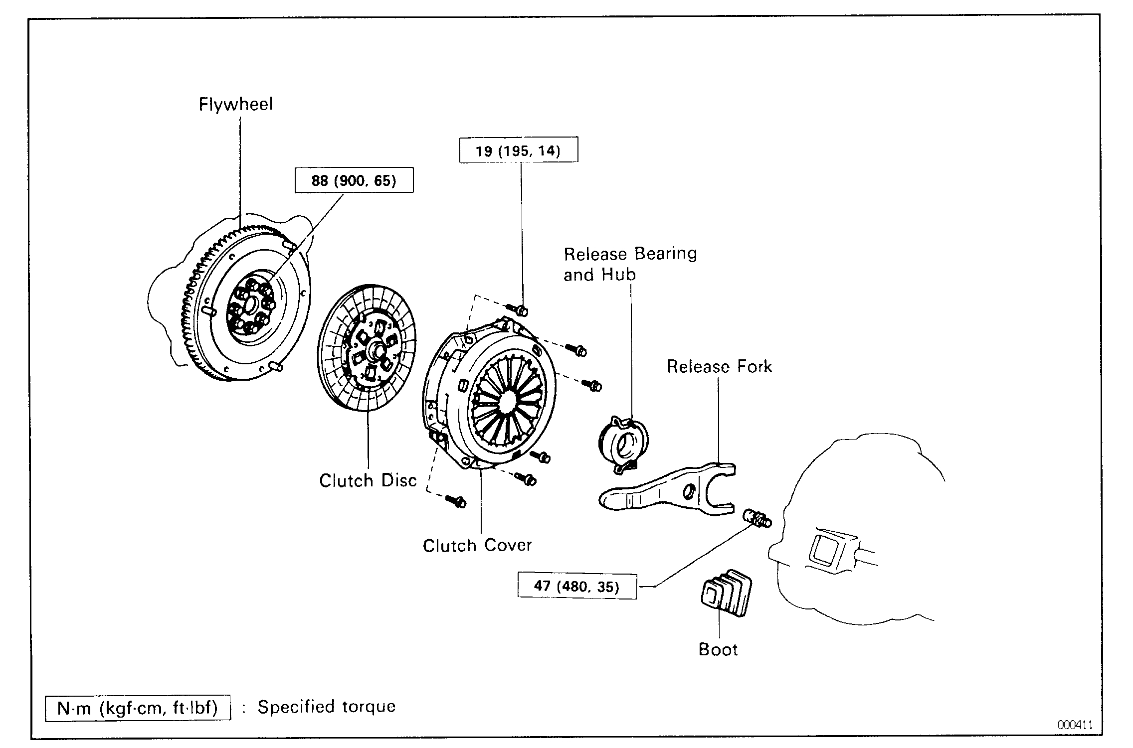 Torque: 19 N.m (195 kgf.cm, 14 ft.lbf)