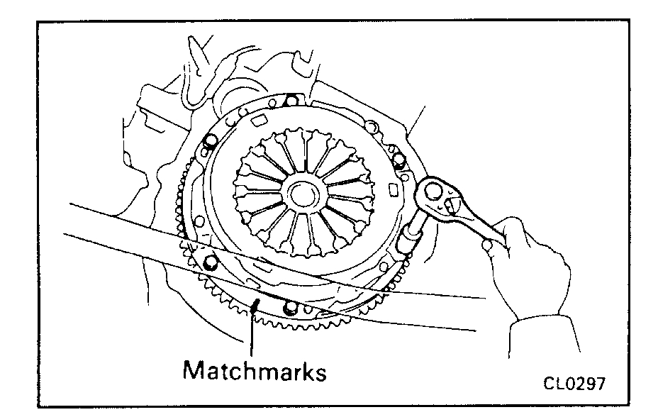 (b)Align the matchmarks on the clutch cover and flywheel.
